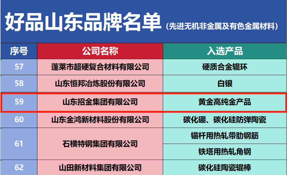 招金集團(tuán)入選第二批“好品山東”品牌名單