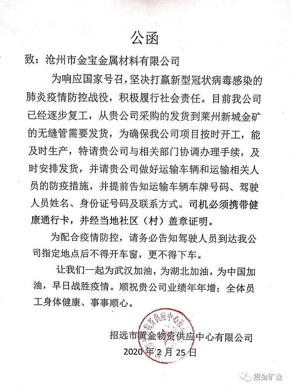 招金礦業(yè)這幾家企業(yè)這樣做到疫情防控和生產(chǎn)兩不誤