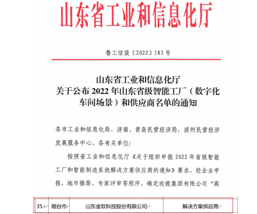 金軟科技成功入選2022年山東省省級(jí)智能制造系統(tǒng)解決方案供應(yīng)商名單