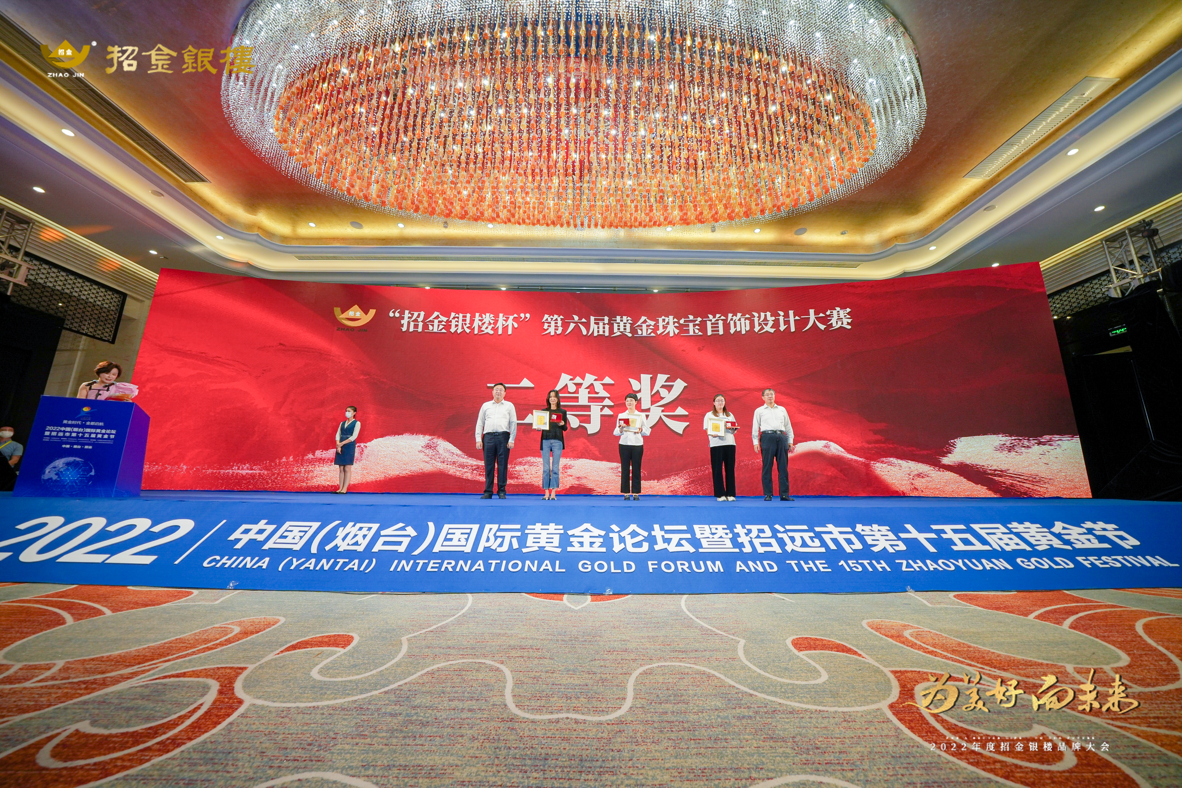 8月29日晚,“招金銀樓杯”第六屆黃金珠寶首飾設(shè)計(jì)大賽頒獎(jiǎng)典禮在金都招遠(yuǎn)龍湖大酒店三樓宴會(huì)廳隆重舉行,