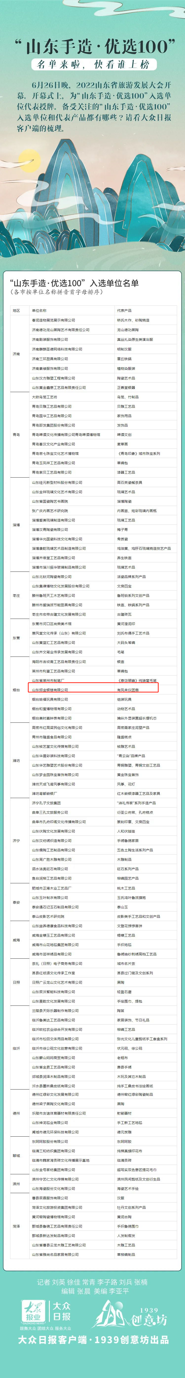 近日,“山東手造·優(yōu)選100”名單公布 山東招金銀樓有限公司成功入選!