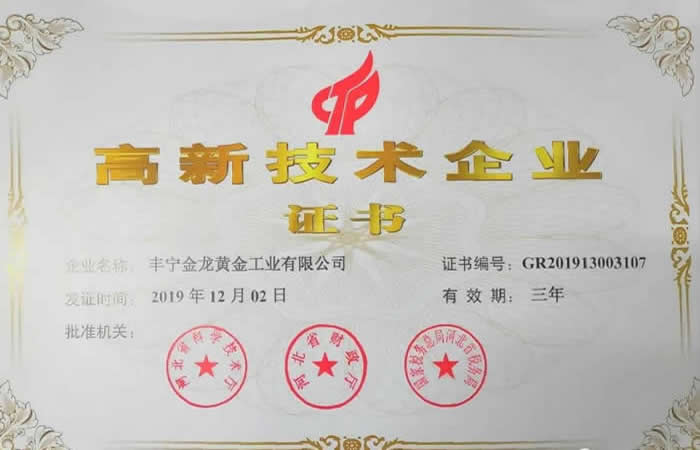 豐寧金龍獲得“國家級高新技術(shù)企業(yè)”稱號